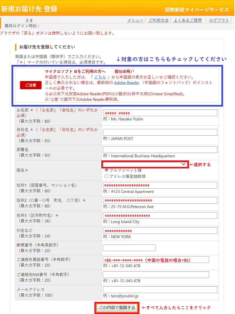 エアメールを中国に郵便で送る場合の表書き(宛名・住所)の書き方について書きます。 隣国の中国、以前と比べ交流が深くなり 北京や上海の友人、海外出張の日本人宛に年賀状など エアメールでメッセージを送ることが増えてきました。 日本人宛ならいいのだけど、 中国人宛の場合は手英語の住所の書き方&電話番号の書き方まとめ。 81ってなに? から こころ 16年5月10日 0 Share Facebook Twitter Google WhatsApp 前回はebayのお話をしましたが、海外サイトに登録する際中国の住所の書き方の基本ルールとは?英語での住所の書き方 emsなど、中国への郵便物の送り方、宛名や住所の書き方 中国への国際郵便の宛名・宛先は中国語の漢字?手紙を届ける 中国人に書く手紙の敬称 中国国際結婚手続きねむしし;